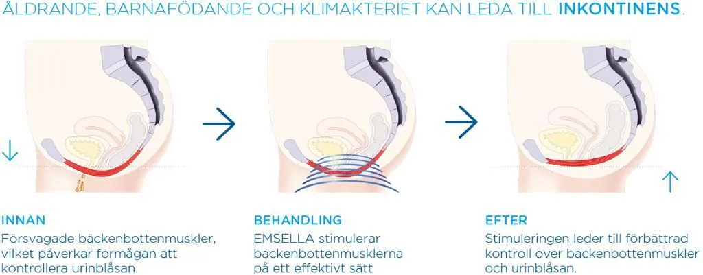 Emsella är den enda muskelstärkande behandlingen med elektromagnetisk teknologi som är kliniskt beprövad och godkänd för behandling av urininkontinens.